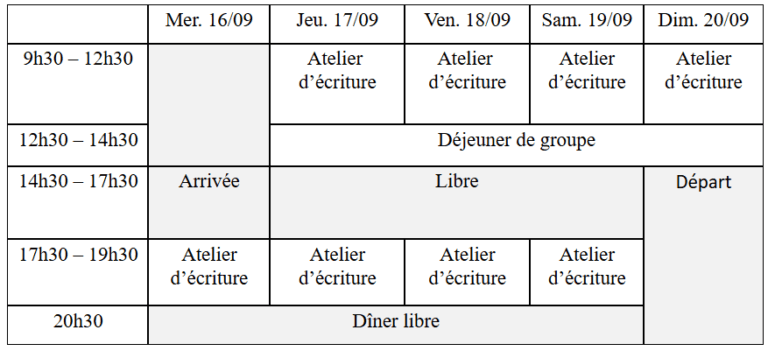 Un temps de bilan invite chacun, en fin de stage, à revenir sur ses attentes. Chaque participant est en outre invité à remplir le document-type de bilan qui lui a sera adressé par mail à la fin de l’atelier.