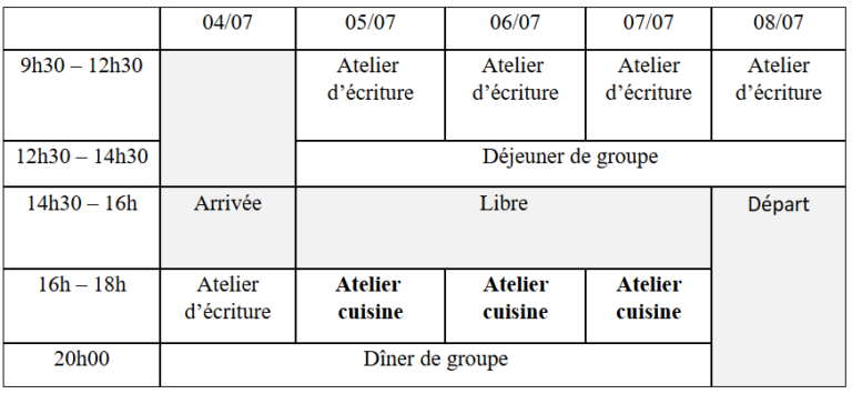 Ce stage s’adresse à ceux qui ont envie, en toute détente, de développer leur créativité dans l’écriture et dans l’art de cuisiner.