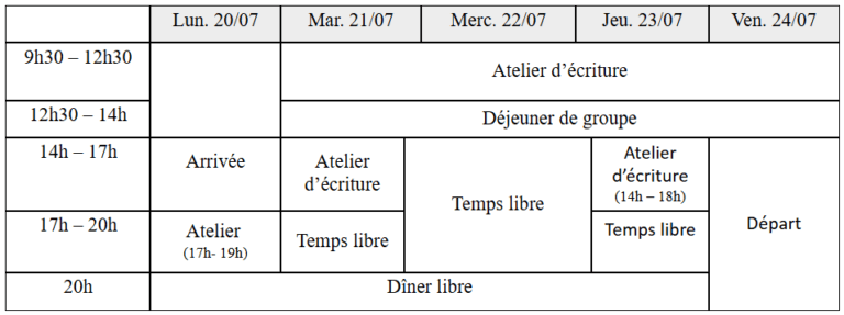 Qui n’a jamais joué à Robinson sur son île déserte, avec deux ou trois livres et un stylo pour seule compagnie ? Qui n’a jamais rêvé d’échapper au monde pour affronter de nouvelles aventures ? Accueillis dans un site proche de la nature, vous écrivez un récit de robinsonnade aux fondations solides. Alors, prêts pour l’aventure