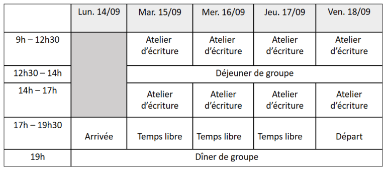 2 h d’accompagnement individuel sont comprises dans votre séjour d’écriture.