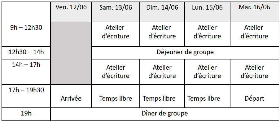 Chaque stagiaire partira d’une nouvelle de sa production et la partagera à l’animatrice et à l’ensemble des stagiaires en amont du stage.